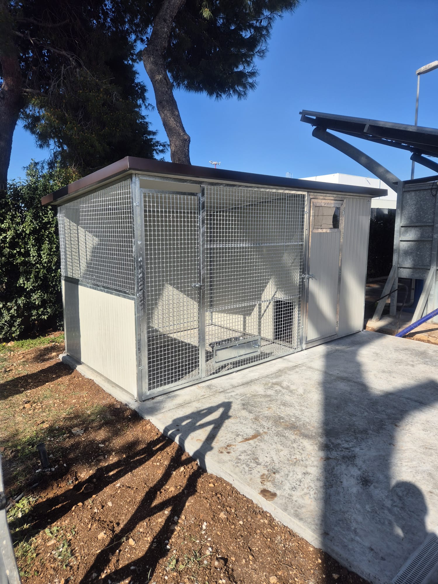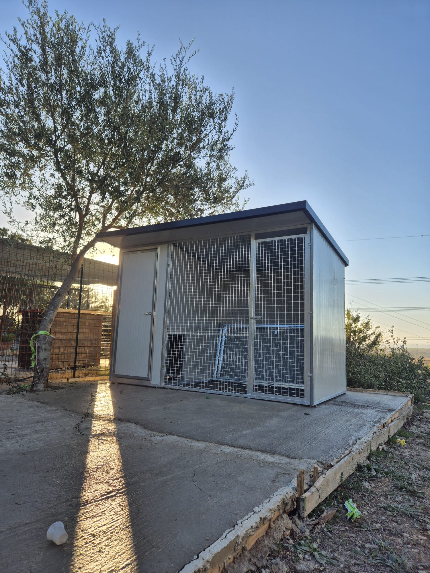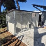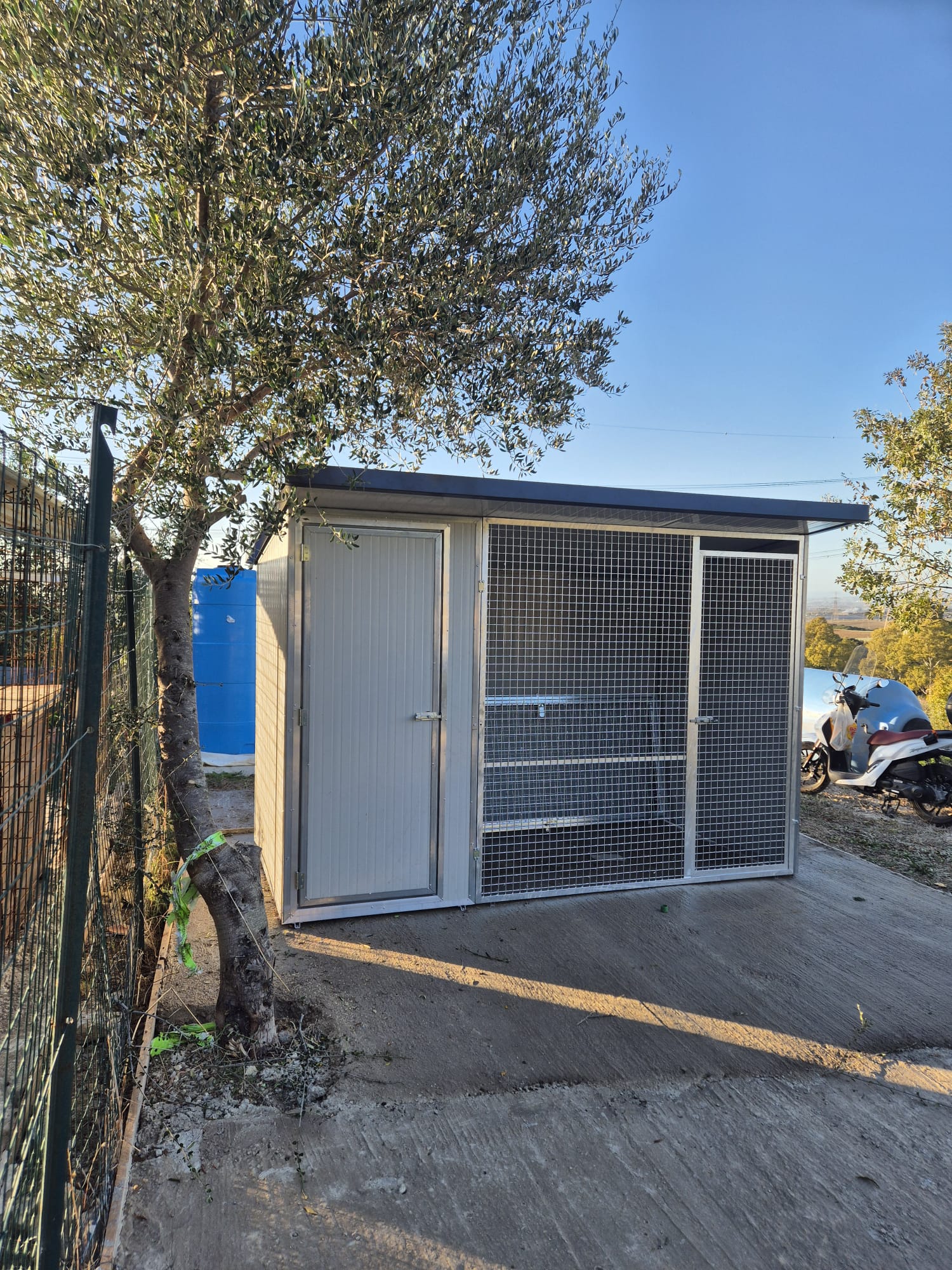 Il Box per cani con zona notte colore Bianco è un modello di box coibentato per cani da utilizzare all’esterno. I lati in pannelli coibentati sono bordati con dei profilati zincati su 3 lati in modo da formare una struttura solida, mentre nella parte inferiore il profilato è in alluminio in modo da evitare la corrosione. Il lato anteriore è diviso da una parte in rete elettrosaldata è bordato con profilati per serramenti con zincatura a caldo ed una parte in coibentato per l’accesso pedonale alla zona notte. Il laterale può andare dal tutto chiuso in pannelli al tutto aperto in rete, passando per soluzioni più personalizzate tipo metà pannello e metà rete sia in verticale che in orizzontale. La Zona Notte è isolata dal box esterno da un unico accesso per il cane. Questo box coibentato per cani è adatto per tutte le stagioni grazie al riparo e all’isolamento che garantisce.
