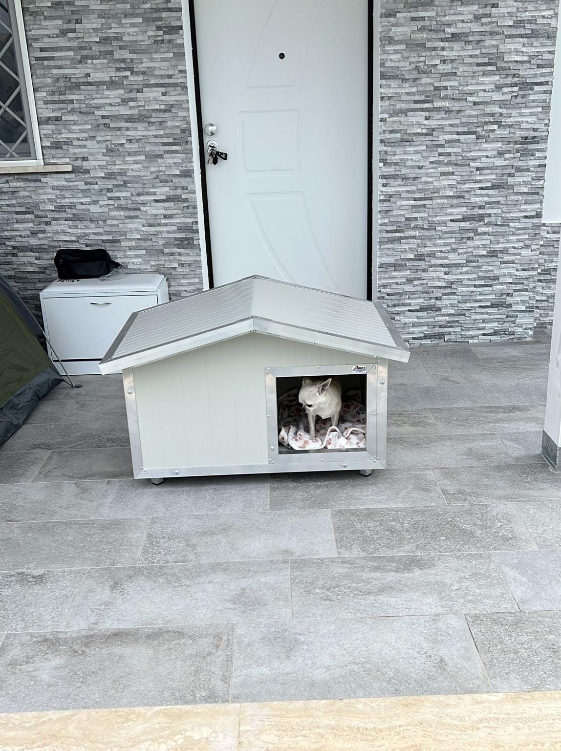 Cuccia per cani coibentata da esterno da giardino garantisce un ottimo isolamento termico sia d’estate che d’inverno. Si realizzano con tetto spiovente a 2 falde che oltre ad essere adatte per la pioggia hanno anche un aspetto piacevole . Sono realizzate in coibentato da 3 cm con profilati in Alluminio 35×35. Completamente smontabili tutte le volte che vuoi grazie al nostro sistema di fissaggio con rivetti filettati, il tetto è apribile per permettere l’ispezione ed è rialzata da terra con piedini di 5 cm (su richiesta regolabili). E’ compresa di asta per sostegno tetto.