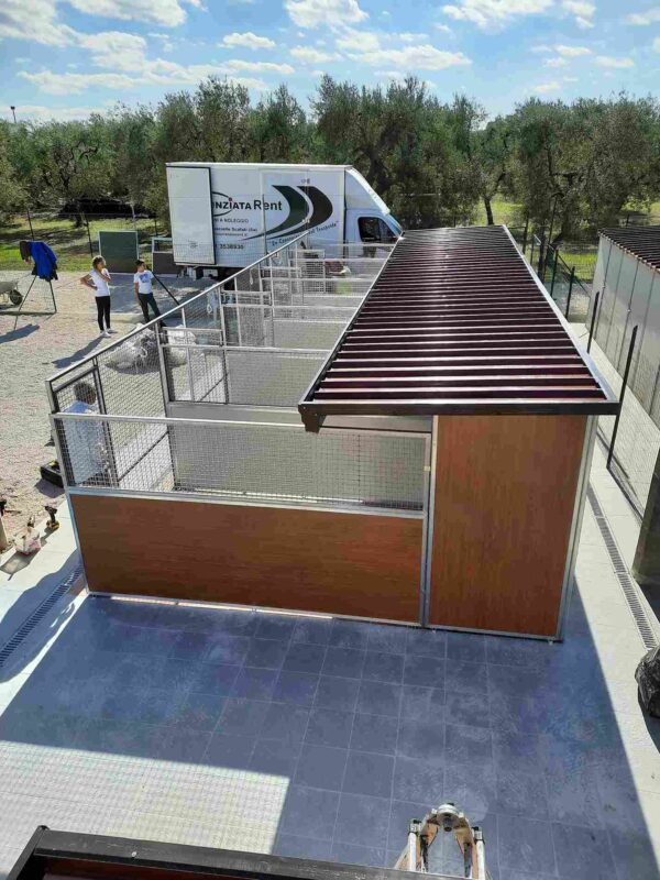 Pareti Coibentate Bianco/Grigio o Effetto Legno da 3 cm bordate con profilati zincati 35×35 mm su 3 lati in modo da formare una solida struttura e profilati in alluminio nella parte inferiore. I pannelli sono rialzati dal suolo da piedini in alluminio alti 1,5 cm con fori per il fissaggio al suolo. Tutti i profilati inferiori dei pannelli sono forati in modo da far fuoriuscire l’acqua nel caso ci entrasse.