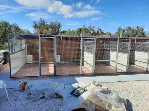 Telai in Rete elettrosaldata con foro 40×40 mm filo 4mm e profilati per serramenti con bagno di Zincatura a Caldo. Porta di accesso fornita di cerniere con piolini sfilabili in modo da permettere un eventuale manutenzione e chiavistelli con alloggio per catenaccio.